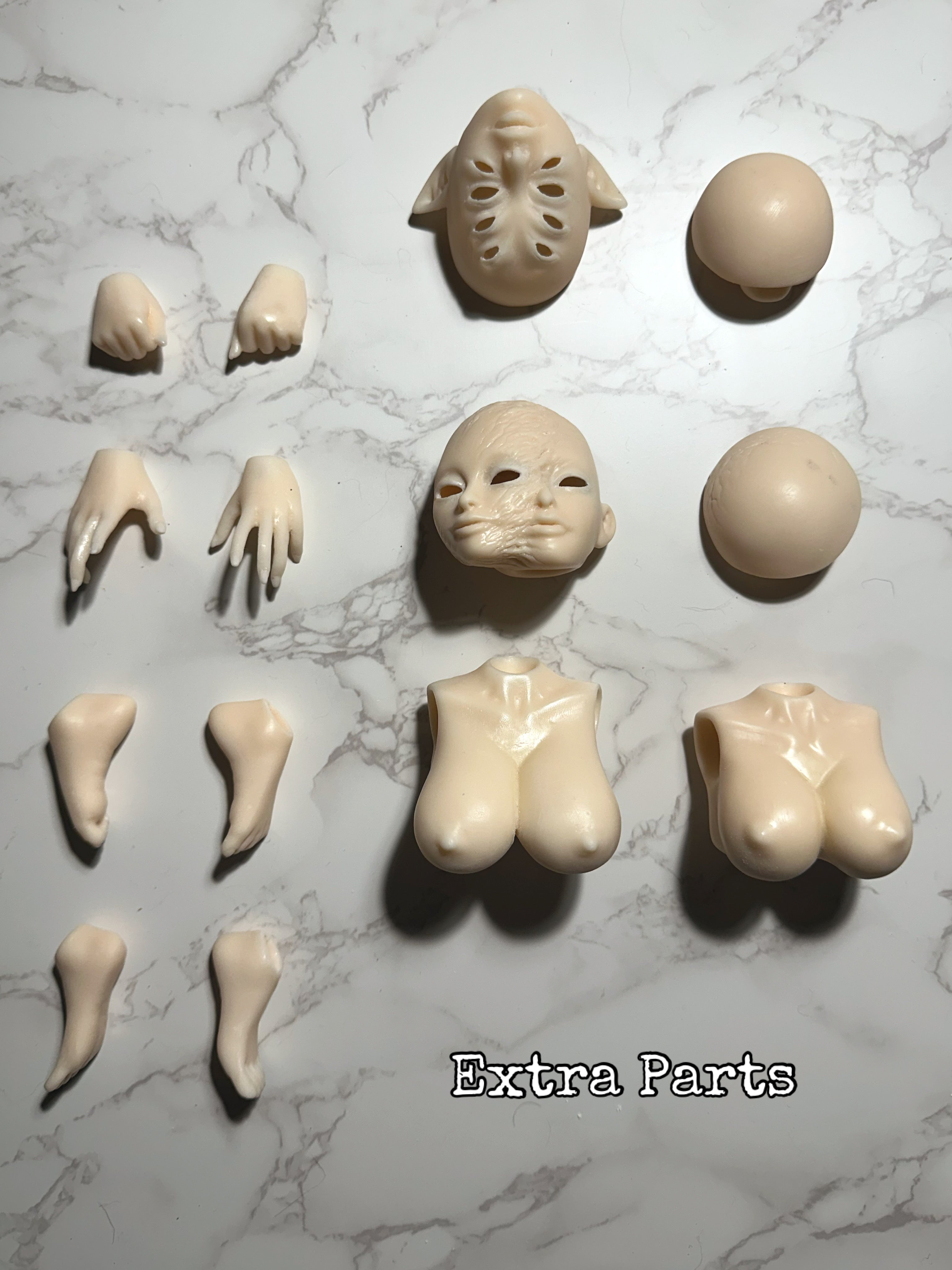 A: A boxed Cheng Doll comes with a blank doll, painted base doll or a full set doll with a certificate of authenticity, hand signed by the artist. Additional parts and clothing are included depending on the customer's order.